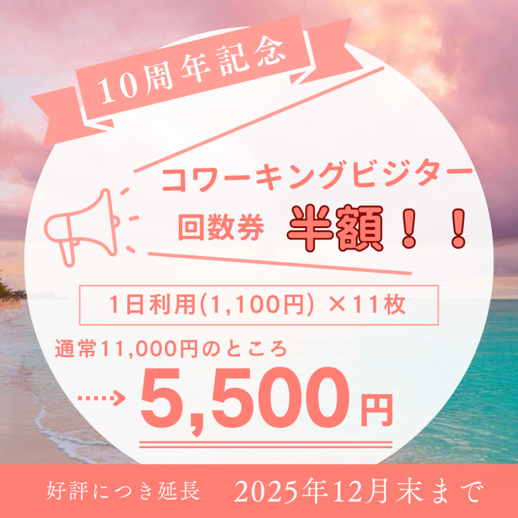 ナユタビルのコワーキングスペースをお得にご利用いただける11回分のチケットです。